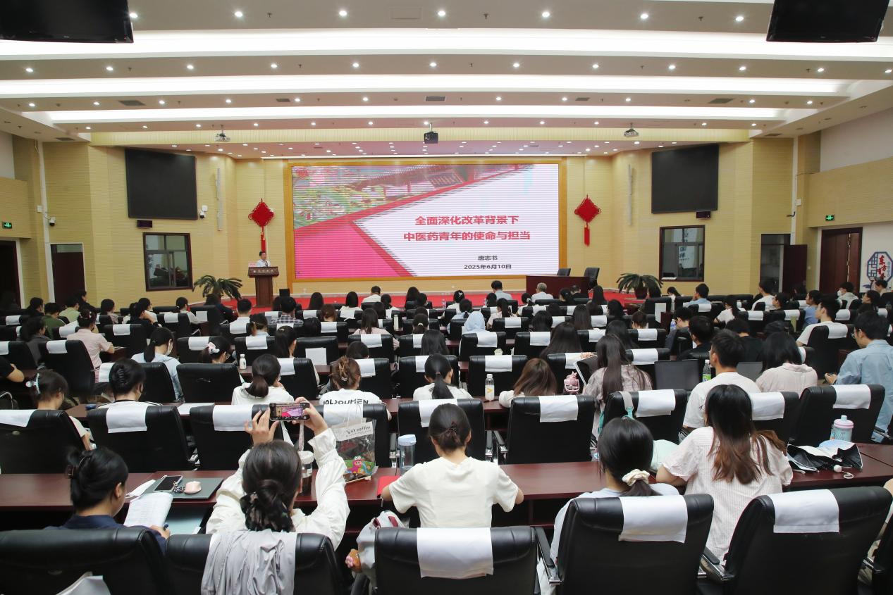 唐志書校長的黨課從服務(wù)國家改革開放大局、緊跟中醫(yī)藥事業(yè)改革創(chuàng)新形勢、落實北中醫(yī)改革發(fā)展戰(zhàn)略和擔(dān)當(dāng)中醫(yī)藥青年的使命四個方面,深刻剖析了中醫(yī)藥事業(yè)在新時代面臨的機遇與挑戰(zhàn),勉勵青年學(xué)子勇?lián)厝危詫嶋H行動投身中醫(yī)藥傳承創(chuàng)新發(fā)展偉業(yè)。他強調(diào),青年學(xué)子要做到扎根經(jīng)典,夯實理論根基;扎根臨床,錘煉實踐本領(lǐng);扎根基層,服務(wù)健康中國。更要拓寬國際視野、講好中醫(yī)藥故事、勇攀科研高峰,主動融入國家發(fā)展大局。他寄語學(xué)生黨員,切實發(fā)揮先鋒模范作用,勇立時代潮頭,爭做中醫(yī)藥傳承創(chuàng)新的排頭兵,鼓勵大家在攀登醫(yī)學(xué)高峰與服務(wù)人民健康的征途上,書寫無愧于時代、無愧于青春的壯麗篇章。