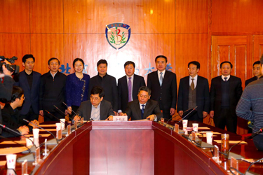 最后,張術平市長、徐安龍校長代表雙方簽署協議。棗莊市副市長趙連冠及相關領導,我校副校長谷曉紅、黨委副書記靳琦、副校長王偉及高思華教授助簽。
