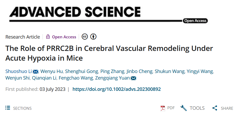 近期,我校生命科學學院青年教師李碩碩在權威期刊Advanced Science上發表題為“The Role of PRRC2B in Cerebral Vascular Remodeling Under Acute Hypoxia in Mice”的研究論文。該研究由生命科學學院青年教師李碩碩聯合軍事醫學研究院袁增強教授課題組共同完成,李碩碩為共同第一作者和共同通訊作者,生命科學學院為第一單位。研究揭示了RNA結合蛋白PRRC2B調控缺氧條件下腦血管網絡重塑的分子機制。
