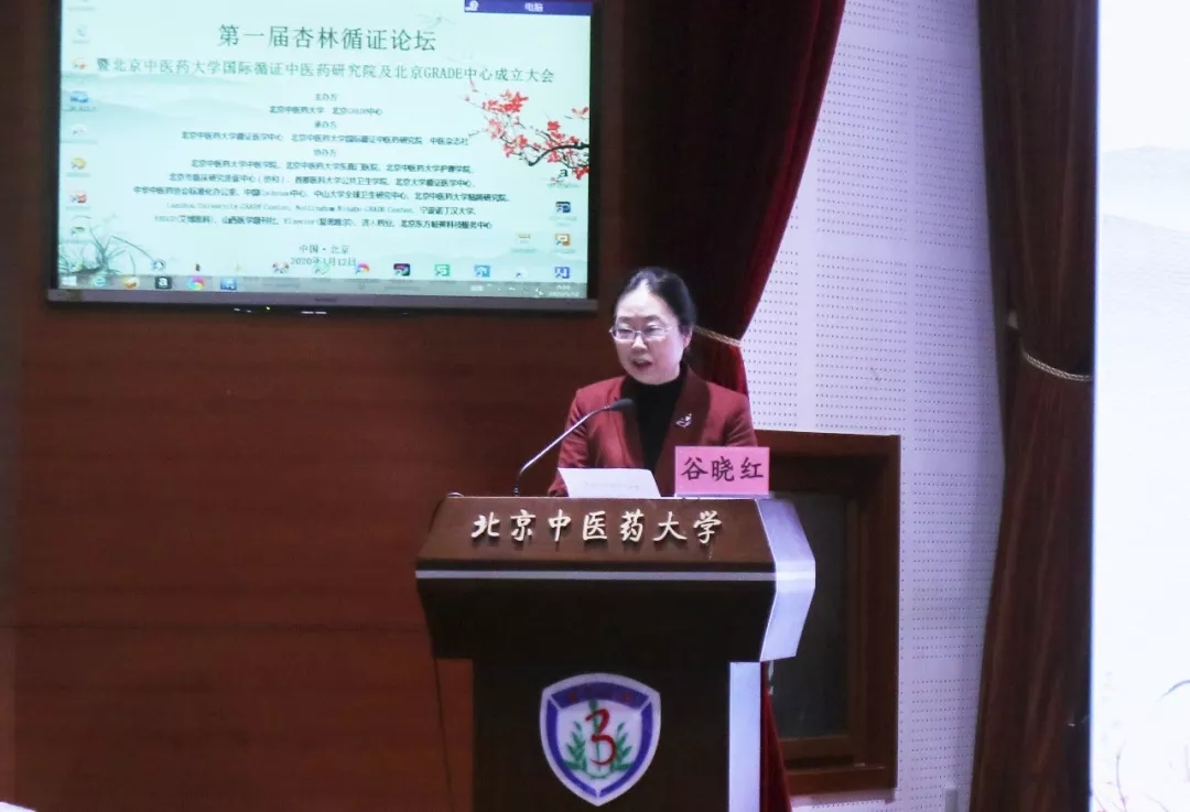 谷曉紅書記宣布成立北京中醫藥大學國際循證醫學研究院的決議。研究院院長由徐安龍校長兼任,執行院長由北京中醫藥大學循證醫學中心主任劉建平擔任,副院長由東直門醫院常務副院長商洪才、中醫學院副院長費宇彤、護理學院循證護理中心主任郝玉芳擔任。谷曉紅書記為北京中醫藥大學國際循證醫學研究院的領導頒發聘書,與徐安龍校長共同為研究院揭牌。