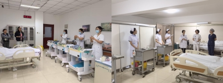 自接到競賽通知起,學(xué)院領(lǐng)導(dǎo)和東直門醫(yī)院護(hù)理部高度重視,成立專班全力支持三位老師備賽,召開備賽安排部署會,制定嚴(yán)格的分階段訓(xùn)練計劃,從單項護(hù)理操作訓(xùn)練到臨床案例團隊合作訓(xùn)練,三位老師訓(xùn)練刻苦努力,指導(dǎo)團隊不辭辛苦加班加點指導(dǎo)團隊案例分析合作的反復(fù)演練。