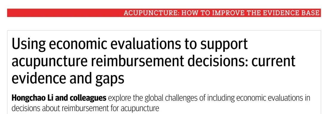 北京中醫藥大學循證醫學中心團隊在針灸臨床研究方法學和衛生經濟學領域取得重大進展,系列成果發表在國際醫學領域頂級期刊英國醫學雜志(BMJ,最新影響因子39.89分)上。兩篇文章是名為“針灸:如何促進證據基礎”(Acupuncture: How to Improve the Evidence Base)五篇系列文章中的兩篇(https://www.bmj.com/acupuncture)。