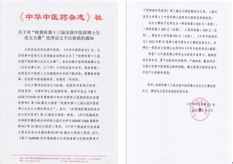 全國中醫藥博士生學術論壇暨“岐黃杯”全國中醫藥博士生優秀論文評選活動旨在全面展示中醫藥博士生(含在站博士后)的學術水平和創新精神,搭建大范圍、高水平、深層次的交流平臺,調動博士生開展學術創新的積極性,加強博士生培養經驗交流,促進全國中醫藥研究領域博士生人才的成長,培育新一代中醫藥研究領域領軍人才。