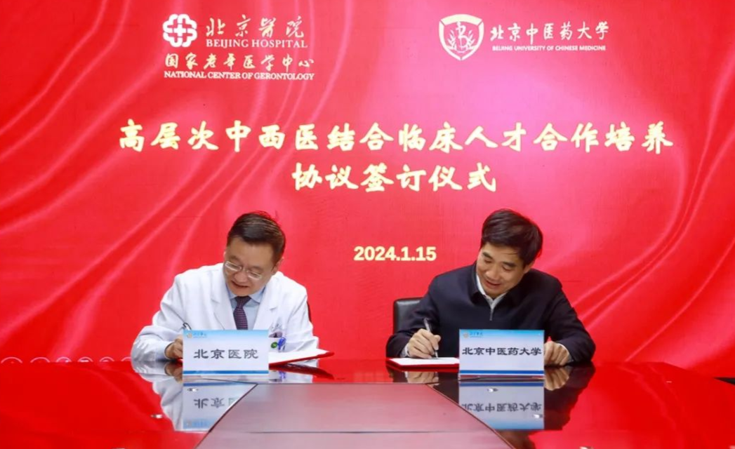 為落實高層次中西醫結合臨床人才培養改革方案,提高學生中西醫臨床綜合診療能力,1月15日下午,我校與北京醫院聯合簽署高層次中西醫結合臨床人才合作培養框架協議。我校校長徐安龍、副校長陶曉華,北京醫院院長季福綏、副院長張烜,以及雙方相關部門和學院負責人等參加協議簽訂儀式。