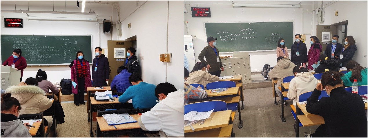 考試期間,副校長王偉,研究生院常務副院長、校長助理張立平對各考點及監控室進行了全面巡視,并對本次研考的疫情防控、考務安全、考試服務等各方面工作給予了高度肯定。
