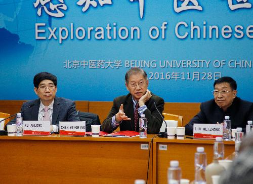 11月28日,來自35個國家政府核心媒體的資深記者應邀來到北京中醫藥大學,進行了以“感知中醫世界行”為主題的中醫藥專題采訪,并通過親身體驗更進一步的感受了中醫藥文化的魅力。中國民族醫藥學會國際交流與合作分會主任委員,前駐新西蘭、瑞典大使陳明明先生,北京中醫藥大學校長徐安龍教授,甘肅省衛生計生委主任劉維忠,中國科學院中藥研究所書記、副所長朱曉新教授出席了活動,并與來訪記者就如何進一步推進中醫藥事業的國際化發展進行了對話。陳明明主任委員主持了本次對話。