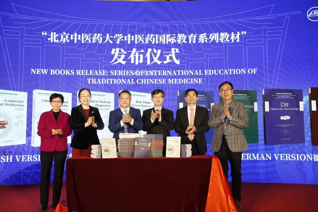 在國(guó)家中醫(yī)藥管理局、人民衛(wèi)生出版社支持下,北京中醫(yī)藥大學(xué)主編的英文版、德文版國(guó)際化中醫(yī)藥教育核心教材同時(shí)發(fā)布。由教育部中外人文交流中心與北京中醫(yī)藥大學(xué)共同建設(shè)的“國(guó)學(xué)與傳統(tǒng)醫(yī)藥中外人文交流研究院暨人才培養(yǎng)基地”同時(shí)揭牌。