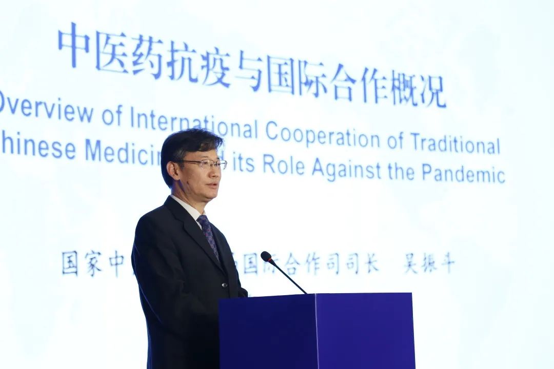 在特邀報(bào)告環(huán)節(jié),國(guó)家中醫(yī)藥管理局國(guó)際合作司司長(zhǎng)吳振斗,從中醫(yī)藥國(guó)際交流與合作現(xiàn)狀、中醫(yī)藥深度參與新冠肺炎疫情防控、與國(guó)際社會(huì)分享中國(guó)經(jīng)驗(yàn)方案、做好頂層設(shè)計(jì)構(gòu)建人類(lèi)健康共同體四個(gè)方面,做了專(zhuān)題報(bào)告。