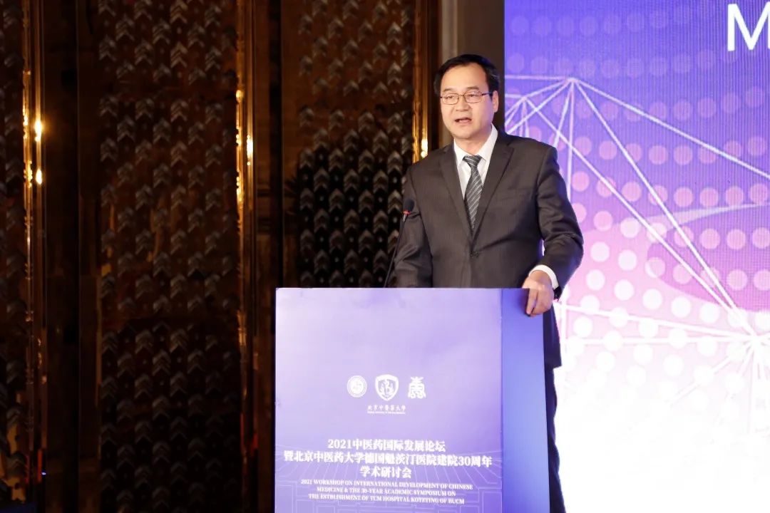 世界衛(wèi)生組織傳統(tǒng)醫(yī)學(xué)部主任張奇、北京市中醫(yī)管理局局長(zhǎng)屠志濤、教育部中外人文交流中心副主任夏娟、世界中醫(yī)藥學(xué)會(huì)聯(lián)合會(huì)副秘書(shū)長(zhǎng)陳立新、德國(guó)魁茨汀市市長(zhǎng)Hofmann、中國(guó)駐慕尼黑領(lǐng)事館總領(lǐng)事童德發(fā)、南非科技部本土知識(shí)創(chuàng)新司卡巴拉拉等領(lǐng)導(dǎo)在致辭中共同回顧了北京中醫(yī)藥大學(xué)國(guó)際化發(fā)展及德國(guó)魁茨汀醫(yī)院建設(shè)的30年歷史。