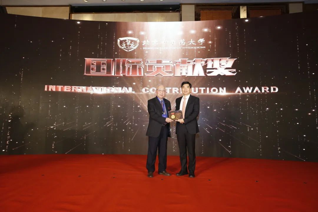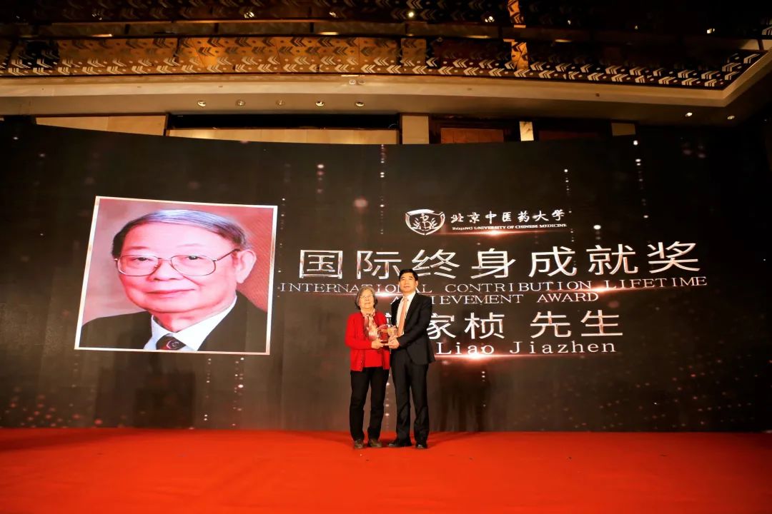(我校商憲敏教授代表廖家楨先生領(lǐng)取北京中醫(yī)藥大學(xué)國(guó)際終身成就獎(jiǎng))