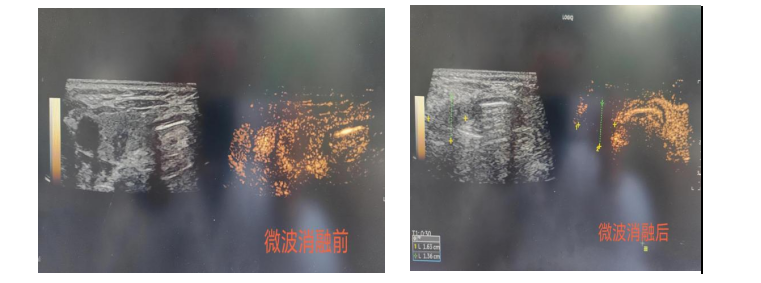 超聲不僅是“導航儀”,更是“保險鎖”:比如消融治療時,通過超聲造影及彈性成像確認硬化劑是否均勻彌散及判斷凝固范圍等,將誤差控制在1mm以內。這種精準性使得既往被認為不適合微創治療的復雜病例(如鄰近血管的結節)也能安全開展消融。