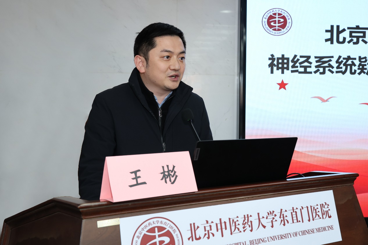 王彬副院長在致辭中指出東直門醫院神經系統疑難病中西醫多學科會診的開展,將為提高復雜疑難病的診治能力提供助力。會診中心經過廣泛調研,吸納了兄弟醫院的工作經驗,在此基礎上形成了中西醫結合的會診模式。他希望,會診中心專家為神經系統疑難病的攻克貢獻智慧與力量,希望會診中心成為患者的希望之光,助力患者走向康復之路。