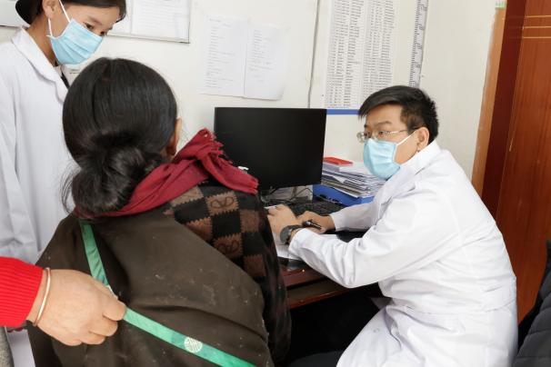 與此同時,東方醫院16位專家深入壤塘縣人民醫院繼續開展義診、查房、教學及工作指導。在內科病房,副院長郭翔宇和心血管科副主任醫師曹征詳細了解了科室的基本情況,隨即針對疑難病例進行了教學查房,曹征醫生介紹說,因為壤塘縣地處高海拔地區,受限于飲食習慣、教育程度等多方面因素,患者的血壓普遍控制很差。她建議科室開展定期隨訪、生活方式教育等慢病的管理。隨后,曹征醫生進行了《常見心律失常診斷》的教學講座,參加學習的醫生紛紛表示,希望將來可以和東方醫院進一步加強基層教學聯系, 增強他們對于中醫理法方藥的理解領悟和對于最新指南的學習。