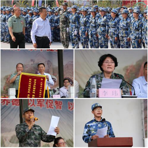 儀式在莊嚴的國歌聲中開始。翟雙慶副校長在中國少年軍校聯盟副主席兼秘書長劉江山的陪同下,依次檢閱各方隊并向全體參訓師生和教官致以親切問候。在分列式中,參訓輔導員作為第一支受閱方陣,整齊劃一地走過主席臺,“勤求博采,厚德濟生,情系學生,助航成長”的口號是他們的心聲。隨后,女子民兵連及各營方陣依次走過主席臺,同學們隊列整齊,步伐有力,在莊嚴的中國人民解放軍進行曲中展示著北中醫學子意氣風發的風采。在特色科目表演中,由男生合練的軍體拳、女生合練的匕首操、海軍旗語、三生三相氣宇軒昂,展現出同學們團結協作、永不放棄的精神。同時,戰術表演和戰傷救護亮相匯報表演,同學們熟練的運用匍匐、翻滾、低姿等動作,生動地模仿了作戰現場,展現了錚錚鐵骨。此外,由近500名女生組成的拼圖組字隊伍,一邊齊聲歌唱一邊變換隊伍,先后組成“北京中醫藥大學”、“勤求博采,厚德濟生”、“BUCM”和北中醫校徽等圖案,將閉營儀式推向高潮。特色科目表演后,學工(武裝)部部長、軍訓團政委李瑋宣讀了嘉獎令,對190余名軍訓優秀學員進行嘉獎。隨后,校黨委副書記、副校長翟雙慶向北京中少軍培訓中心基地贈送錦旗,感謝基地對我校軍訓工作的大力支持。一營一連中醫學院聶維辰同學作為優秀學員代表發言,表達了對教官和老師們的感謝,并表示在今后學習生活中將繼續發揚在軍訓中培養的吃苦耐勞的精神。