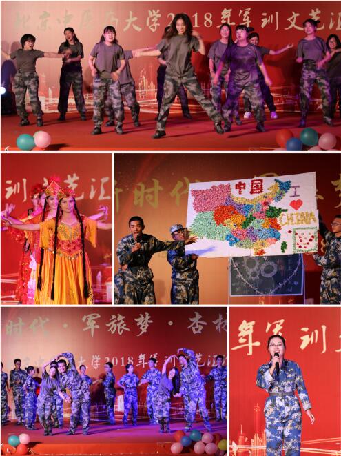 當晚,在培訓中心基地還舉辦了軍訓文藝匯演。《強軍戰歌》、武術表演《中華魂》、原創相聲《軍訓堪回首》、情景劇《無軍訓,不大學》、原創校園舞蹈詩《岐黃志》,以及民樂合奏、民族舞蹈等,展現了北中醫學子的青春活力和獨特風采,也流露了師生之間、同學之間的戰友情、師生情。參訓輔導員的《獻給最愛的你們》以舞蹈串燒形式表達了全體指導員對同學們的愛,將晚會氛圍推向高潮,為2018級本科新生軍訓工作畫上了圓滿的句號。