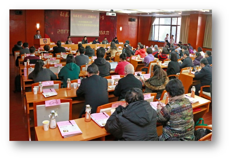 翟雙慶副校長向全體參會人員作“北京中醫藥大學2017年招生就業創業工作總結暨2018年工作部署”,匯報了我校2017年的招生、就業、創新創業工作特色,明確了下一年的工作方向。招生方面,我校招生規模繼續擴大,2017年在全國31個省份實際錄取1888人,比2016年增加295人。圍繞拔尖創新人才培養目標和中醫藥學科特點對自主招生工作進行了改革,設計杏林英才計劃和岐黃國醫計劃。就業方面,截至2017年10月31日,我校確定就業去向的畢業生人數為1881人,就業率為97.77%,與去年同期相比上升了0.08%,再攀歷史新高,在北京市高校及教育部直屬高校中穩居前列,處于較高水平。創新創業方面,我校構建了“融通聯動”式創新創業教育模式和導師深度參與模式,將創新創業教育融入人才培養全過程。2017年獲評全國深化創新創業教育改革示范高校,并掛牌北京地區高校大學生創業園分園,學生創新創業團隊獲得省部級及以上獎勵41項。