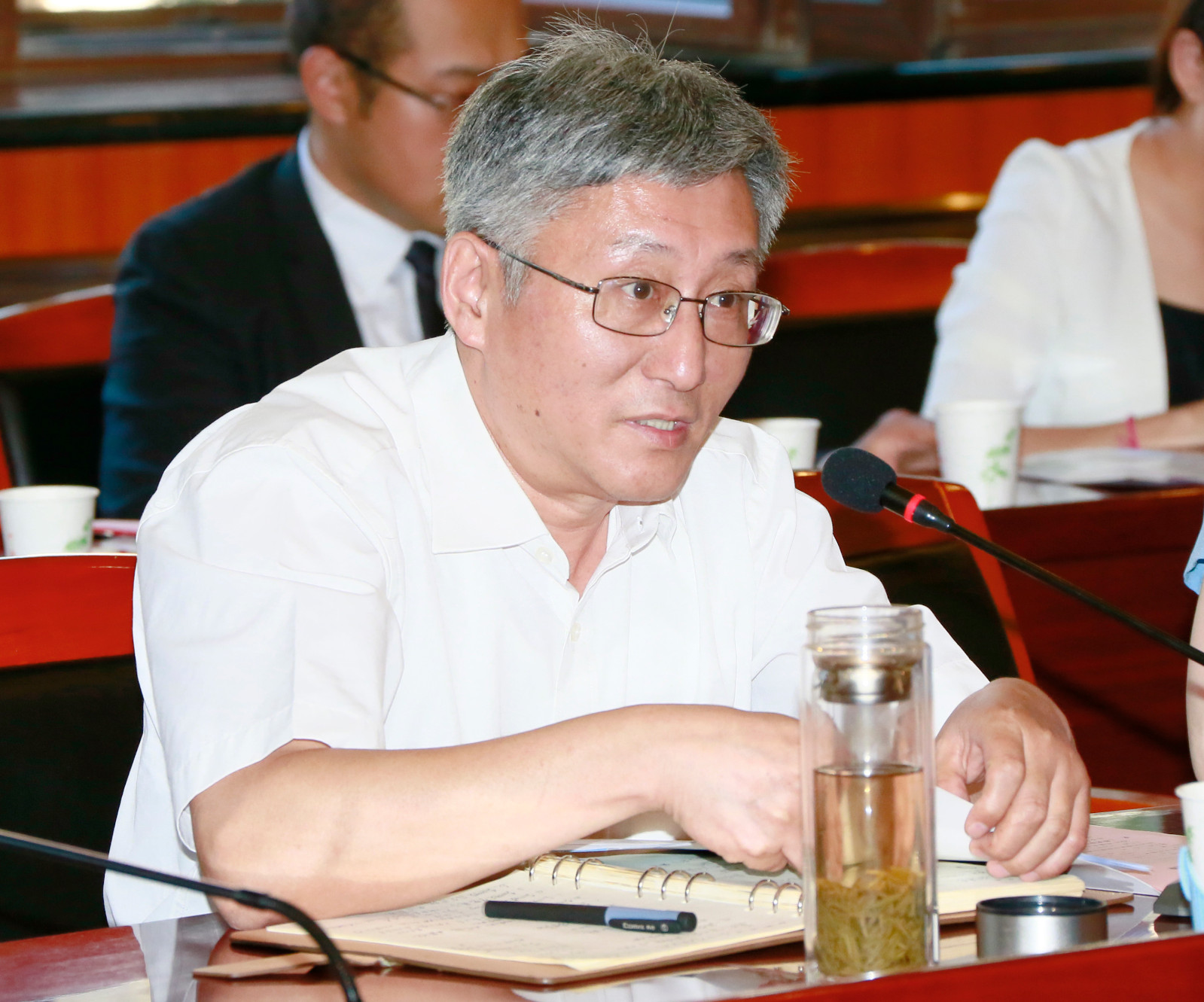 在聽取各位參會教師的發言后,吳建偉書記首先代表學校向大家致以節日的問候,認為各位老師的所思所考和對大學發展的建議很有價值。吳書記指出,教師是提高國民素質的原動力,是興國之本,是事業發展的奠基石。大學高度重視教師隊伍建設,在即將召開的校慶大會上將為從教滿30年的教師代表頒發證書,以表彰他們的貢獻。吳書記語重心長地說,教師不僅要做學問之師,也要做學生健康發展之路的引路人,教師要忠誠于事業,要有高尚的品德,要下苦功夫歷練基本功,要不怕學生問。針對青年教師的發展,吳書記指出青年教師要愛崗敬業,要融入團隊,吃苦耐勞,有持之以恒的韌勁,要兼有好的學術素質和良好的品德,做到德藝雙馨!吳書記同時說,教師這一職業神圣而清苦,要有奉獻精神,有學無止境的意識,要多進圖書館,活到老學到老。吳書記同時表示,學校將進一步加強人才隊伍建設,重引進、重培養、重儲備,要將有潛力的青年教師送到國內外知名高校和研究院所去培養。