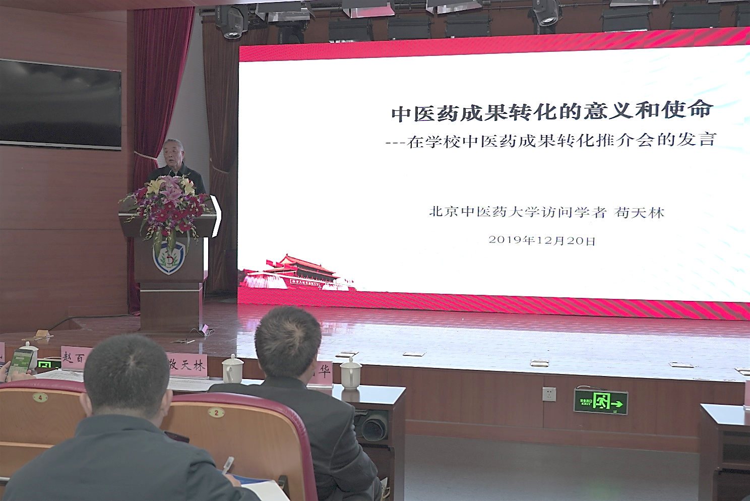 《光明日報》原總編輯、我校高級訪問學者茍天林作了《中醫藥成果轉化的意義》主旨報告。他從歷史、現狀和未來三個維度,講述了成果轉化對中醫藥發展的重大意義,并就中醫藥成果轉化的方法、路徑提出了建議。各位領導的講話和報告,贏得了與會人員的高度評價。