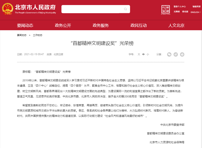 2019年以來,首都精神文明建設戰線深入學習貫徹習近平新時代中國特色社會主義思想,堅持以習近平總書記視察北京重要講話精神為根本遵循,立足“四個中心”戰略定位,提高“四個服務”水平,聚焦全市中心工作,培育和踐行社會主義核心價值觀,深入推進精神文明創建,樹立文明新風尚,首都各界涌現出一大批精神文明建設方面的先進典型,為建設國際一流的和諧宜居之都作出了新的貢獻。