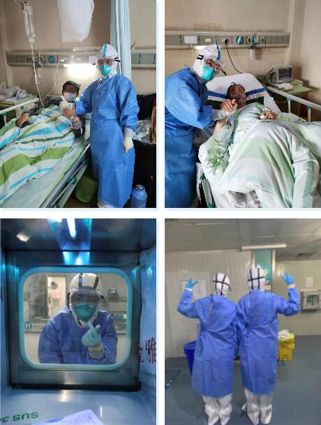第七臨床醫(yī)學(xué)院(孫思邈醫(yī)院)的護(hù)士李慶濤作為銅川援鄂醫(yī)療隊(duì)的一員,在武漢第九醫(yī)院進(jìn)行救治工作。他說:“在這個(gè)特殊的工作環(huán)境下,每一名隊(duì)員都像家人一樣。大家相互幫助、相互關(guān)心。我們會互相檢查穿脫隔離衣、進(jìn)出病房操作的每一個(gè)細(xì)節(jié),嚴(yán)格規(guī)范既是保護(hù)自己、保護(hù)隊(duì)友,更是對患者負(fù)責(zé)。我們既要認(rèn)真給病人做治療,也要積極安撫患者的心理,疏導(dǎo)患者的不良情緒。每每看到病人的表情從緊張焦慮變得放松有信心,我的心里也很開心,希望他們都平安無事,早日康復(fù)。希望每一個(gè)人都能遠(yuǎn)離疾病,健健康康。”