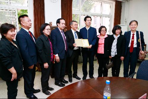 會談期間,我方向來訪客人介紹了我國中醫藥教育的發展與現狀、我校專業設置、教學體系、科學研究、國際交流與合作等情況。泰方也介紹了中醫教育和醫療在泰國的現狀及存在問題,同時表達了希望與我校在中醫教育、醫師培訓等方面開展多層次合作的愿望。會后,泰國代表團會見了我校泰國留學生。