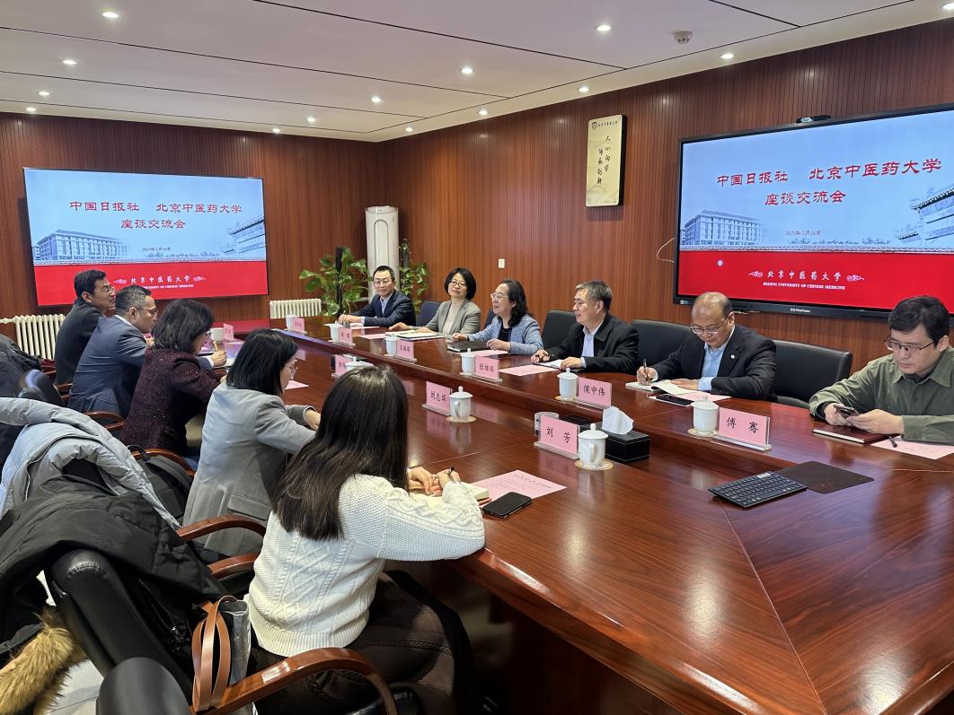 中國日報(bào)社經(jīng)濟(jì)部、文化頻道、事業(yè)發(fā)展部相關(guān)人員,我校黨校辦、宣傳部、國際與港澳臺工作部、中藥學(xué)院負(fù)責(zé)人參加了座談。