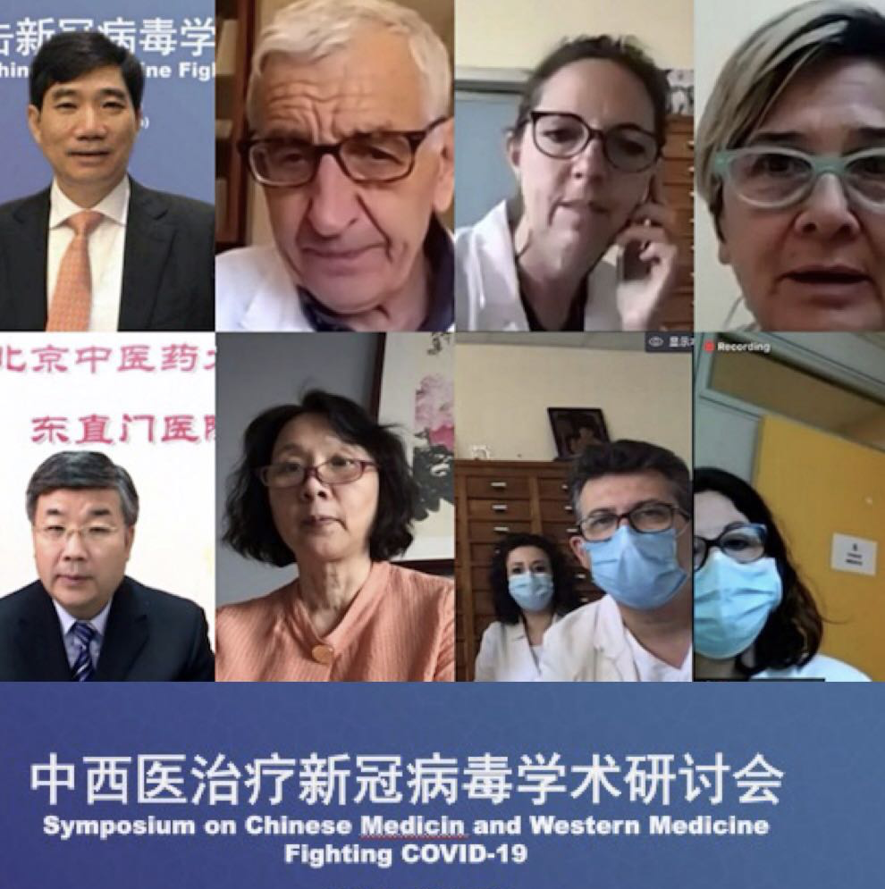 5月22日,為加強國際間共同抗擊新冠肺炎合作,我校與意大利羅馬大學以視頻形式共同召開中西醫(yī)治療新冠肺炎學術研討會,中意雙方專家交流探討了中西醫(yī)在抗擊新冠肺炎過程中的經驗和突出療效。我校校長徐安龍、東直門醫(yī)院黨委書記葉永安、國際交流與合作處處長唐民科、國家中醫(yī)國際傳播中心主任張丹英,羅馬大學菲奧里尼醫(yī)院精神病學和精神藥理學科主任Giuseppe Bersani、傳染病學專家Miriam Lichtner、ICOT醫(yī)院病理科主任Antonella Calogero、生物制藥和醫(yī)學學院教授Elena De Falco等相關專家參加了視頻會議。