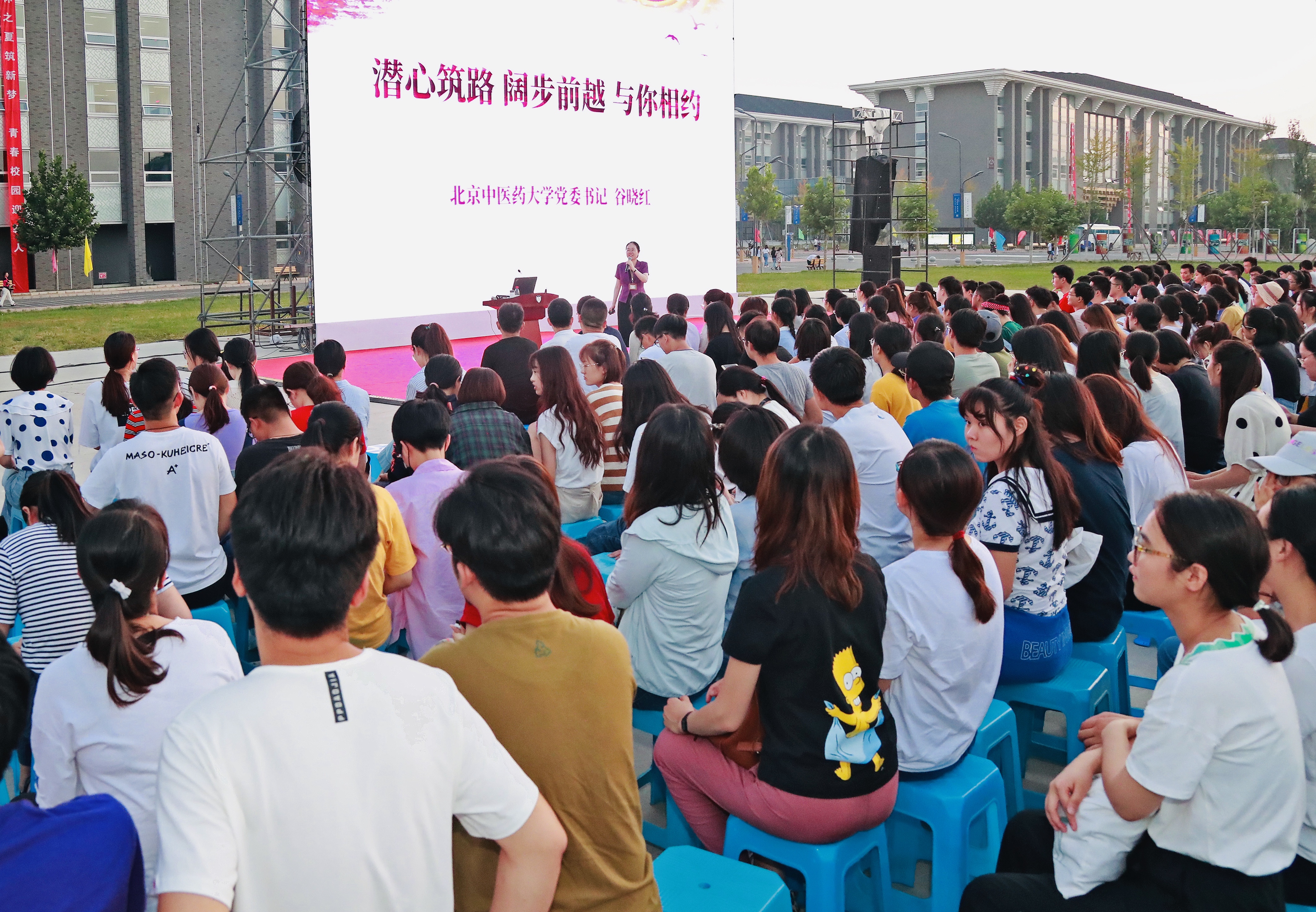 從“建校初期,老一輩中醫藥學家匯集于此,開創了我國現代中醫藥教育的先河”到樹立學生發展為中心的教育理念,人才隊伍和學科建設碩果累累;從“一無教材,二無校舍,三缺師資”到一校三區協同發展,探索新時代醫學教育模式,推動中醫藥走向世界。谷書記字里行間飽含著對北中醫的熱愛和作為北中醫人的自豪。這種自豪之情伴隨著精彩的講述,感染了現場每一位新生。