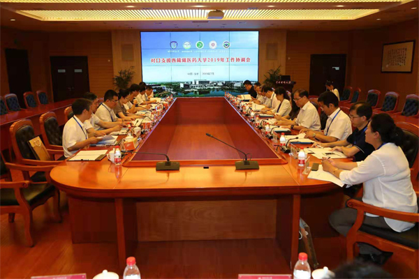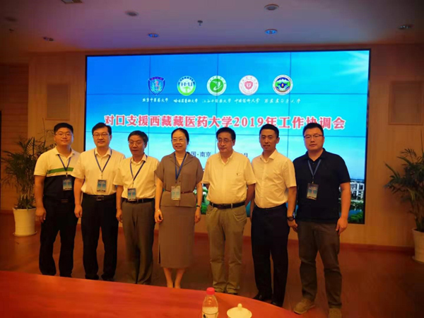 7月25日,對口支援西藏藏醫藥大學2019年度工作會在中國藥科大學召開。我校黨委書記谷曉紅,副校長陶曉華、劉銅華,黨委常委、組織部部長孫傳新,教育部高等教育司農林醫藥處副處長李天罡,哈爾濱醫科大學黨委副書記袁重勝,黨委常委、組織部部長王小雪,中國藥科大學黨委書記金能明,黨委副書記、紀委書記戴建君,江西中醫藥大學黨委副書記趙恒伯,西藏藏醫藥大學黨委書記周陽光,黨委常委、副校長鞠明兵及五所高校相關人員參加了會議。