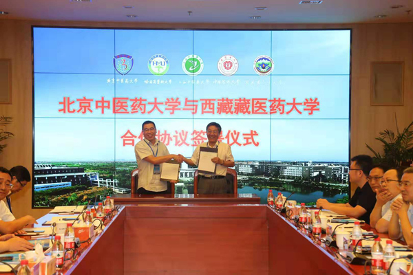 此外,由于西藏藏醫藥大學2018年剛剛獲批中醫學一級學科博士學位授權點,在博士生培養方面經驗欠缺、實力較弱。為提高博士生培養質量,應西藏藏醫藥大學請求,2019年我校協助其培養若干名中醫學(藏醫)專業一年級博士生,以支持西藏高層次民族醫藥專業人才的培養。會上,我校陶曉華副校長和西藏藏醫藥大學鞠明兵副校長分別代表兩校簽署了協助培養博士研究生合作協議。