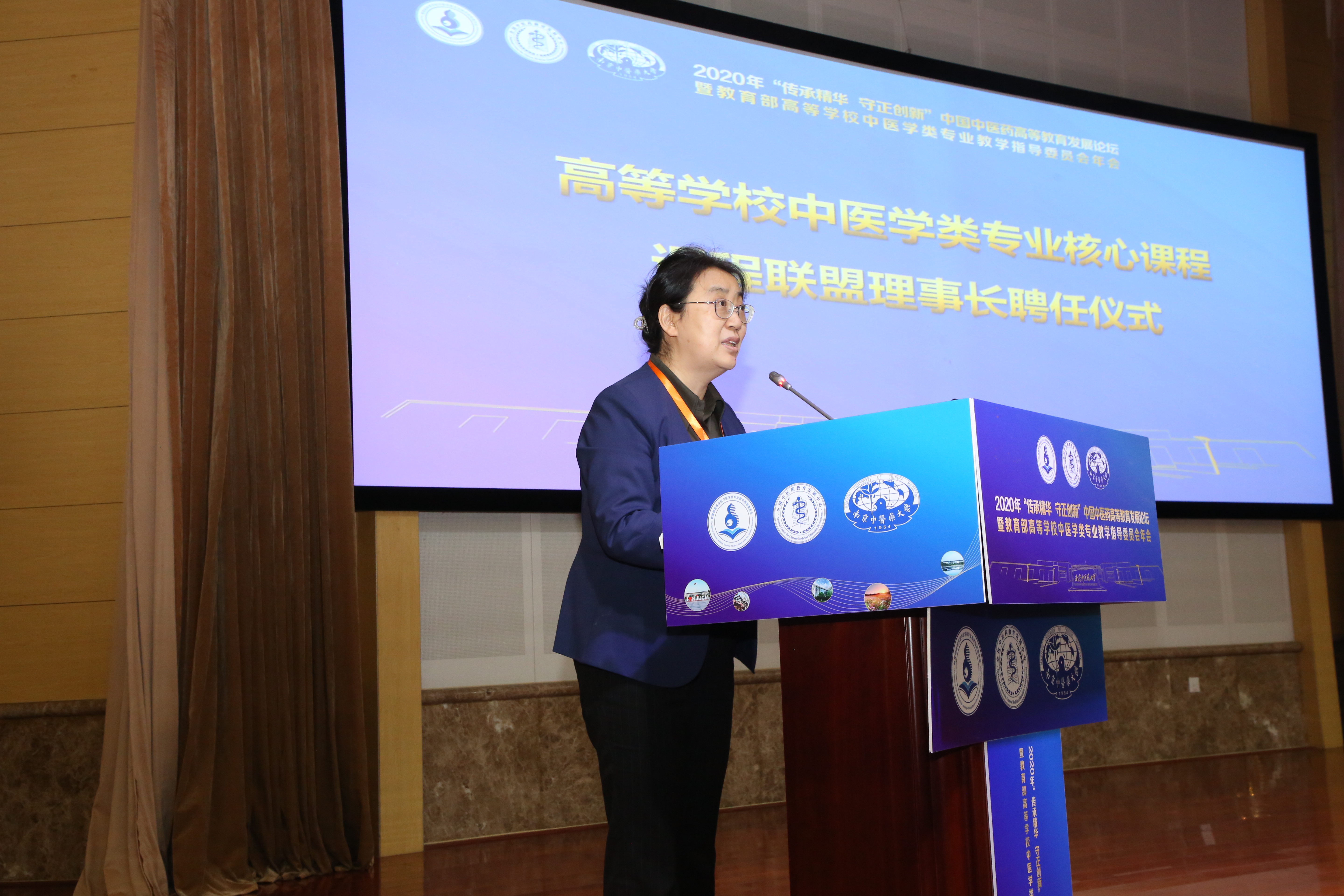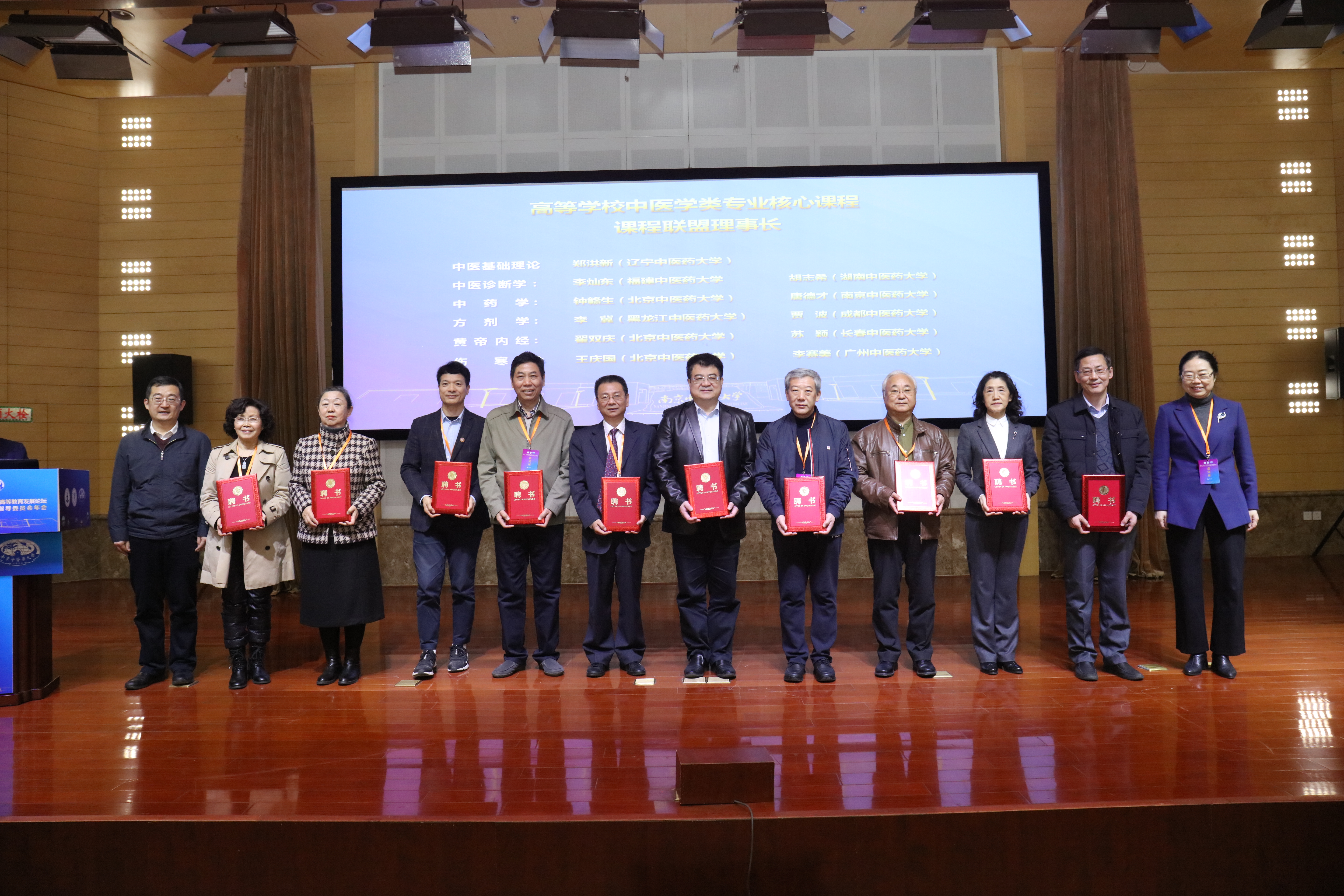 中醫教指委主任委員、我校黨委書記谷曉紅和教育部高等教育司農林醫藥處處長高斌為課程聯盟理事長和教務工作委員會委員頒發聘書