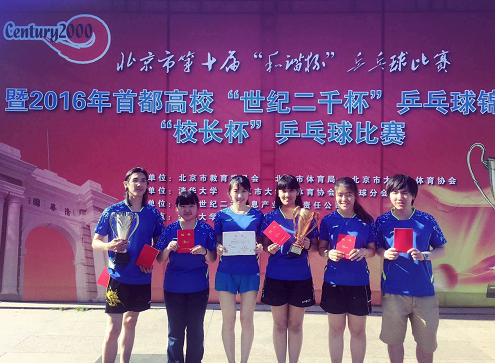 5月28日、29日,我校由學(xué)生組成的乒乓球代表隊(duì)參加了在清華大學(xué)舉行的2016首都高校"世紀(jì)兩千杯"乒乓球錦標(biāo)賽。經(jīng)過激烈角逐,我校取得了男子乙C組第二名,女子乙B組第三名的好成績(jī)。