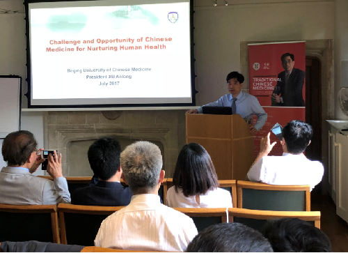 代表團首先訪問了帝國理工學院附屬Chelsea & Westminster醫院以及牛津大學附屬John Radcliffe醫院,與帝國理工學院免疫學與疫苗學中心主任徐小寧教授、牛津大學醫學部主任Gavin Screaton教授商談合作,就未來三方開展中醫藥方面的科研合作奠定了基礎。代表團在訪問劍橋大學、帝國理工學院期間,分別針對當地學生及研究人員舉辦了三場講座,徐安龍校長做“中醫造福人類的機遇與挑戰”的報告。在報告中,徐校長詳細介紹了中醫的精髓及中醫人對待生命的看法,闡釋了為什么中醫藥具有持續的生命力及永恒的價值,得到與會人員的熱烈反響。