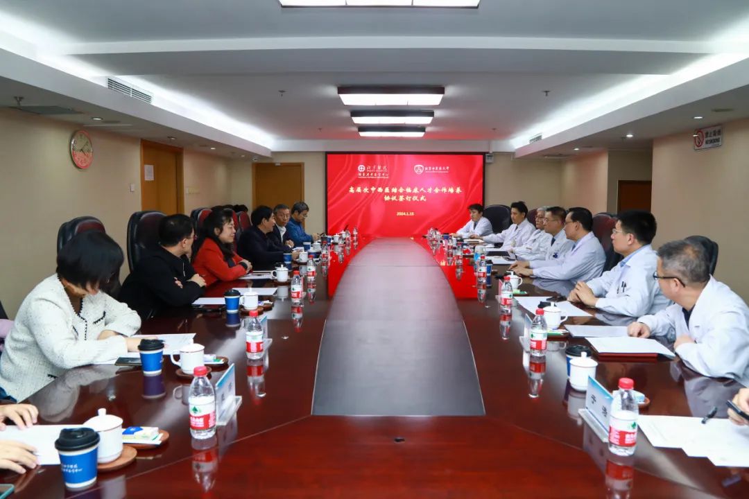 為落實高層次中西醫結合臨床人才培養改革方案,提高學生中西醫臨床綜合診療能力,1月15日下午,我校與北京醫院聯合簽署高層次中西醫結合臨床人才合作培養框架協議。我校校長徐安龍、副校長陶曉華,北京醫院院長季福綏、副院長張烜,以及雙方相關部門和學院負責人等參加協議簽訂儀式。