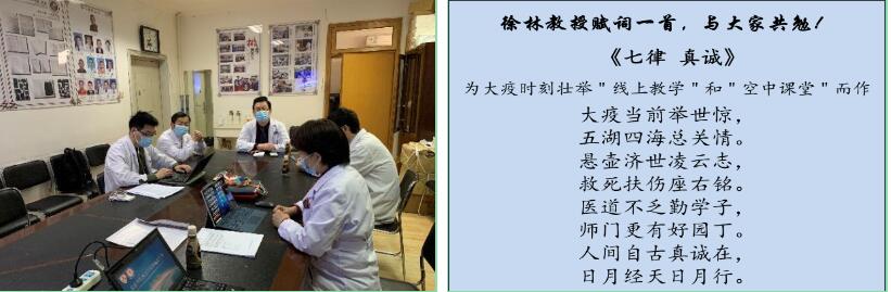中醫內科學臨床學系的老師們領會學校通知精神,研討線上開課方案,就中醫內科學的教學任務、線上教學資源、教學方法、教材選用、課程考核辦法等方面進行逐一梳理,廣泛收集網絡教學資源,反復研討,數易其稿,并將案例式教學融入其中,注重中醫臨床思維的訓練。采用了學生自學中國大學慕課教學內容和微信群互動答疑的方式,結合疫情講授肺系疾病,指出了經典著作對現代臨床的重要價值,鼓勵同學要提高中醫理論知識水平,堅定為人民健康服務的奉獻精神。