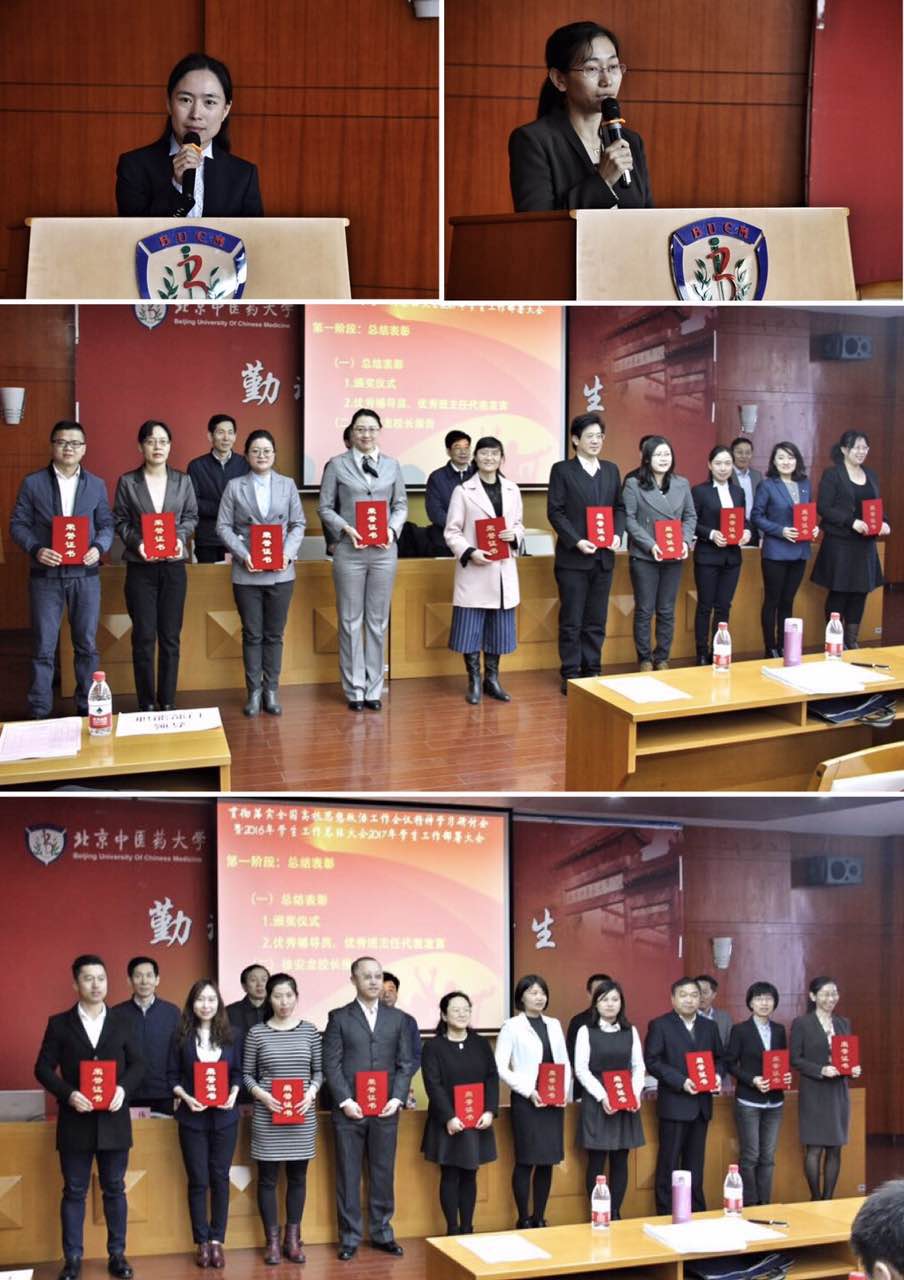 大會對獲得2015-2016學年北京中醫藥大學優秀輔導員和十佳班主任的老師進行了表彰。