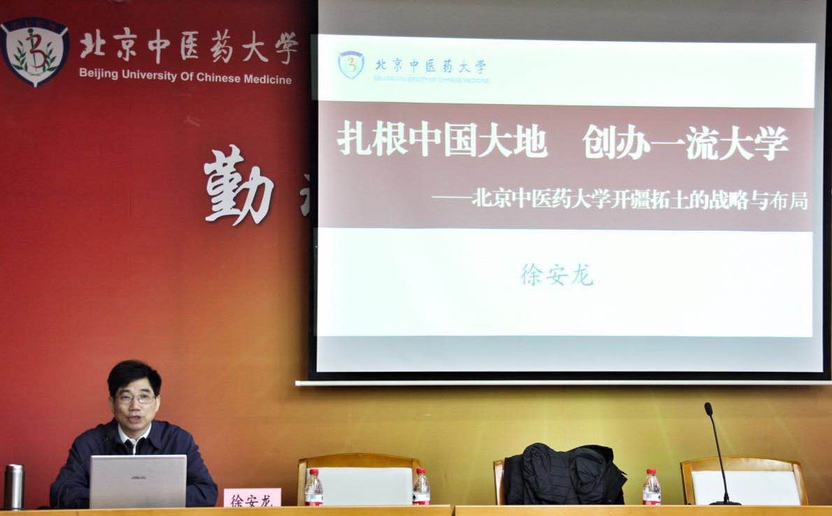 徐安龍校長作《扎根中國大地 創辦一流大學》主題報告。徐校長以“培養什么樣的人、如何培養人、為誰培養人”和“辦什么樣的大學、怎樣辦好大學”為問題導向,從“堅持從嚴治黨,立德樹人,堅定辦學方向”和“堅持文化自信,北中醫的國家戰略與布局”兩方面展開,深入淺出的講解了全國高校思想政治工作會議精神,分析了中醫藥在民族復興偉大戰略中的重要位置,闡述了我校的發展契機和多校區多地域多國辦學、推進“雙一流”大學建設的戰略布局。徐校長指示,我們要守住意識形態領域、構建北中醫大思政平臺、全面提升思想政治工作新維度,立德樹人;要扎根中國大地,辦中國特色社會主義大學,培養社會主義合格建設者和可靠接班人;要打造北中醫品牌,堅持文化自信,發揮特色優勢,完善北中醫國內、國際戰略布局,全力推進“雙一流”大學建設。