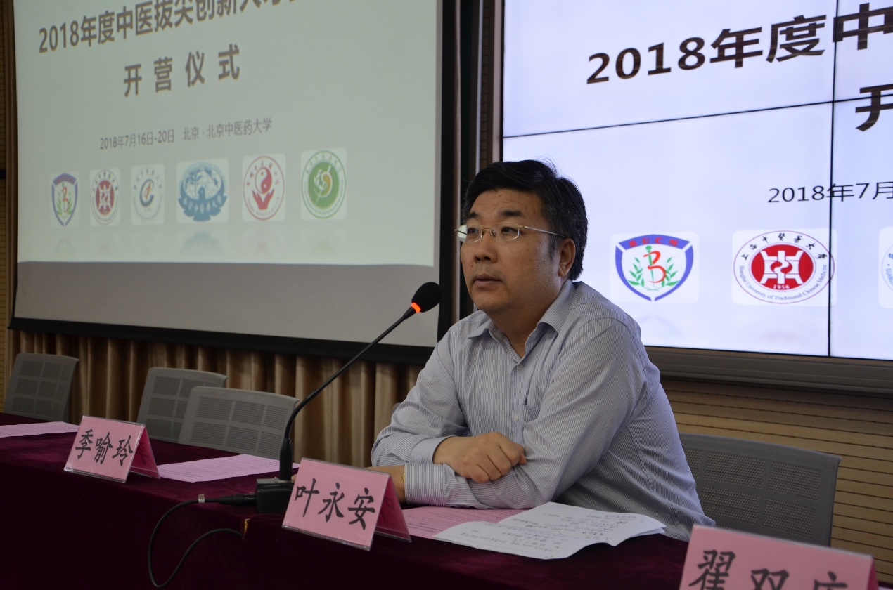 2018年7月17日上午,我校隆重舉辦“創(chuàng)建世界一流中醫(yī)藥大學(xué)合作聯(lián)盟-2018年度中醫(yī)拔尖創(chuàng)新人才暑期夏令營(yíng)”開(kāi)營(yíng)儀式。學(xué)校黨委副書(shū)記、副校長(zhǎng)翟雙慶出席了本次活動(dòng),參加開(kāi)營(yíng)儀式的還有第一臨床醫(yī)學(xué)院黨委書(shū)記葉永安,教務(wù)處副處長(zhǎng)林燕、薛培。此外,來(lái)自我校、上海中醫(yī)藥大學(xué)、廣州中醫(yī)藥大學(xué)、南京中醫(yī)藥大學(xué)、成都中醫(yī)藥大學(xué)以及天津中醫(yī)藥大學(xué)共計(jì)90余位師生代表參加了本次活動(dòng)。開(kāi)營(yíng)儀式由教務(wù)處副處長(zhǎng)薛培主持。