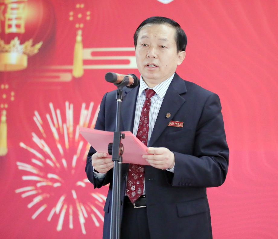 校長(zhǎng)徐安龍代表學(xué)校發(fā)表新春致辭。徐校長(zhǎng)說,2018年是難忘的一年,學(xué)校中醫(yī)學(xué)、中藥學(xué)、護(hù)理學(xué)專業(yè)認(rèn)證,本科教學(xué)審核評(píng)估、研究生學(xué)位點(diǎn)評(píng)估完美收官,學(xué)校育人水平得到高度贊譽(yù),北中醫(yī)的首善地位再次彰顯;良鄉(xiāng)校區(qū)成為學(xué)校主校區(qū),學(xué)校建設(shè)格局有了新的發(fā)展;東直門醫(yī)院實(shí)現(xiàn)主體東遷通州,房山醫(yī)院完成新院區(qū)選址工作;深圳醫(yī)院和孫思邈醫(yī)院在兩年內(nèi)快速發(fā)展提升,成為三級(jí)甲等中醫(yī)院,至此學(xué)校8家附屬醫(yī)院全部成為三甲,北中醫(yī)速度與智慧付出再次令人驚嘆。徐校長(zhǎng)飽含深情地說,2018年,自己被一個(gè)個(gè)數(shù)字所感動(dòng),學(xué)校科技工作和學(xué)科建設(shè)不斷取得新突破,高端人才項(xiàng)目大有斬獲,核心競(jìng)爭(zhēng)力進(jìn)一步增強(qiáng);被一個(gè)個(gè)榮譽(yù)所感動(dòng),學(xué)校在各個(gè)領(lǐng)域佳績(jī)頻傳,社會(huì)美譽(yù)度不斷提高;被一個(gè)個(gè)場(chǎng)景所感動(dòng),難忘全體北中醫(yī)師生員工為學(xué)校發(fā)展建設(shè)愛崗敬業(yè)、拼搏奮斗的感人畫面。他代表學(xué)校“感謝每一位北中醫(yī)人,因?yàn)槟銈兊母冻龊团Γ敝嗅t(yī)的事業(yè)才有了今天的薪火相傳;感謝學(xué)校的老教師、老領(lǐng)導(dǎo),你們的榜樣力量不斷激勵(lì)著年輕一輩披荊斬棘、勇創(chuàng)佳績(jī);感謝廣大校友,你們始終踐行著母校‘追求卓越,止于至善’的精神,成為學(xué)校建設(shè)發(fā)展中最可信賴的社會(huì)力量和重要資源。感謝相關(guān)合作單位,攜手開創(chuàng)中醫(yī)藥發(fā)展的新局面” 。