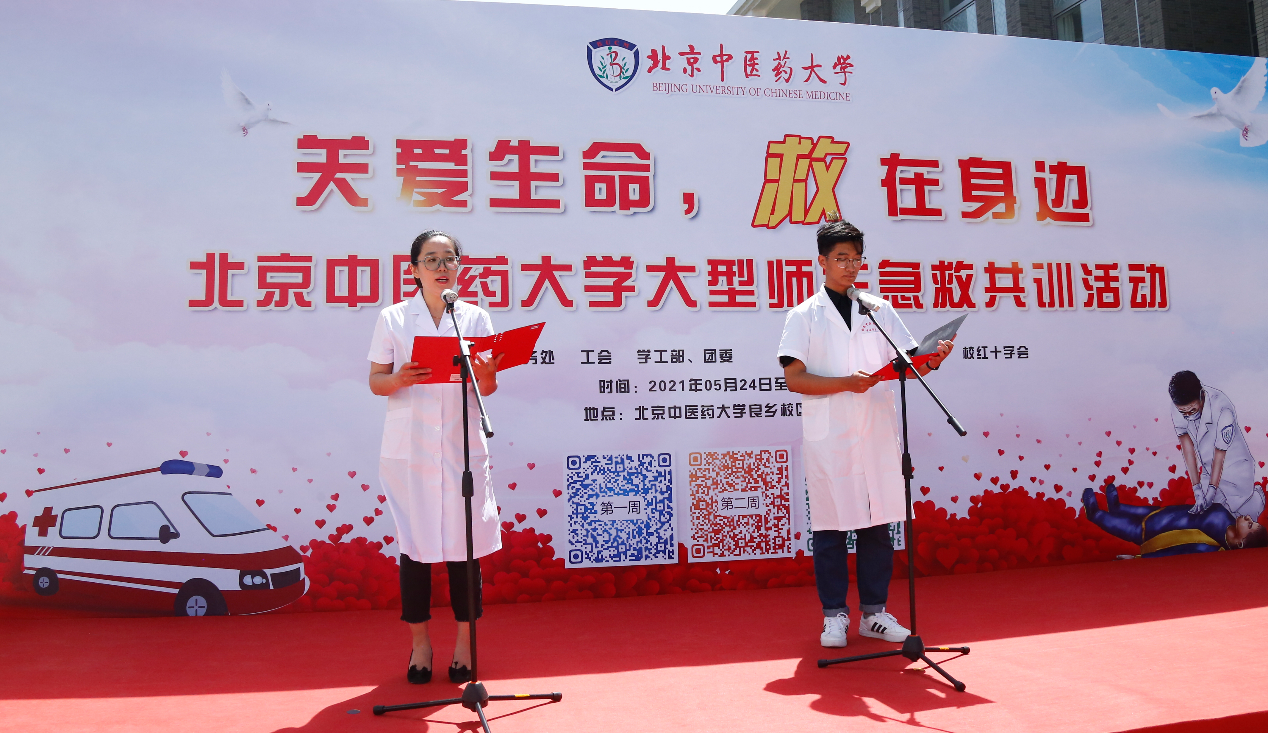 護理學院教師楊麗麗、中醫學院學生楊欽翔作為師生代表共同發出倡議:作為北中醫的一員,我們應該認真學習急救知識,掌握各類急救設備的使用方法;遇到緊急情況不慌張,正確應用急救技術;積極參加急救培訓等急救知識普及類活動;主動承擔科普急救知識、教授急救技能的責任。讓我們共同承擔起服務人民的責任,為我國急救體系的完善貢獻一份力量!