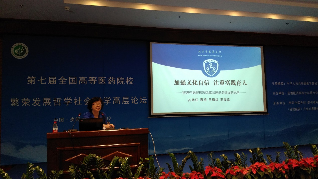 7月30日,第七屆全國高等醫藥院校繁榮發展哲學社會科學高層論壇在貴陽中醫學院召開。我校谷曉紅副校長,馬克思主義學院王梅紅院長、王良濱副院長、裘梧老師參加了此次論壇。全國40余所高等醫藥院校的100余名代表參加了會議。
