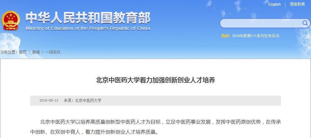 北京中醫(yī)藥大學(xué)以培養(yǎng)高質(zhì)量創(chuàng)新型中醫(yī)藥人才為目標(biāo),立足中醫(yī)藥事業(yè)發(fā)展,發(fā)揮中醫(yī)藥原創(chuàng)優(yōu)勢(shì),在傳承中創(chuàng)新、在雙創(chuàng)中育人,著力提升創(chuàng)新創(chuàng)業(yè)人才培養(yǎng)質(zhì)量。