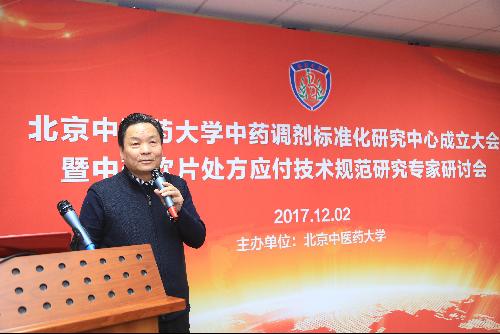 2017年 12 月 02 日上午10點,北京中醫藥大學中藥調劑標準化研究中心成立大會暨《中藥飲片處方應付技術規范研究》專家研討會在我校舉行。