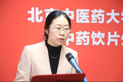 校黨委書記谷曉紅教授首先致辭。谷書記首先代表學校介紹了大學建立中藥調劑標準化研究中心的背景和過程,宣布了學校黨委成立北京中醫藥大學中藥調劑標準化研究中心(以下簡稱標準化中心)的決定。隨即,她從一名資深臨床專家的角度,分析了中藥調劑在中醫藥臨床中的重要作用,突出強調了中藥調劑是中醫藥臨床的療效保障和生命線。指出標準化中心的成立是學校響應國家戰略和引領學科發展的需要、也是藥教協同的需要。她說中藥調劑有著豐富的內涵,詮釋著中藥的理念、中醫的文化滋養,還有大國工匠精神,調劑中體現著中藥美學、中醫哲學等深厚內涵。標準化中心要努力做到有形質量標準和無形人文標準的雙重努力,全面體現中藥的深厚內涵。谷書記還對標準化中心的建設提出了聯動、聯合、協同的要求:做到醫藥等多學科的聯動,開展中醫藥標準頂層規劃,通過標準推廣,助力行業發展;做好“學院+醫院”聯合培養模式,培養出能夠學以致用的高素質中藥調劑實用人才,傳承大國工匠精神;實現醫藥單位、政府的協同發展,提升中醫臨床用藥標準化研究人員整體水平,積極提出政策、標準的建議,為國家戰略和行業發展服務。