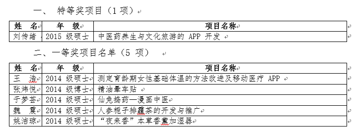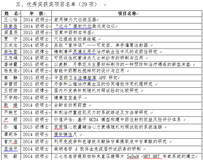 6月3日,“新奧杯”第三屆研究生創新創業大賽決賽暨閉幕式在我校舉行。北京市中醫管理局局長屠志濤,我校黨委副書記、副校長翟雙慶,國家中醫藥管理局人教司陳令軒,校長助理、研究生院常務副院長劉銅華,新奧集團新繹健康研究院常務副院長湯青,北京賽德醫藥董事長汪金海,北京泰濟堂中醫院總經理、北大健康協會副會長杜力,世紀潤和品牌管理北京有限公司總經理閆偉,研究生導師代表李志剛、賀娟、司銀楚、陳建新,大學生創新創業教育中心副主任田潤平,校教育發展基金會秘書長閆興麗,校團委李天罡老師,校研究生院副院長、研工部副部長韓振蘊出席本次活動。此外,活動還邀請了各學院領導、研究生輔導員、班主任和獲獎研究生代表。
