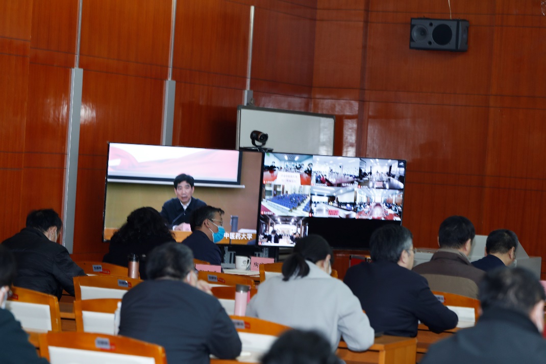 徐安龍校長(zhǎng)結(jié)合《政府工作報(bào)告》的多組數(shù)據(jù),和大家共同回顧了我國(guó)在2020年取得的不平凡的成就。過(guò)去的一年我國(guó)疫情防控取得重大戰(zhàn)略成果、脫貧攻堅(jiān)戰(zhàn)取得全面勝利、在全球主要經(jīng)濟(jì)體中唯一實(shí)現(xiàn)經(jīng)濟(jì)正增長(zhǎng),充分彰顯了中國(guó)特色社會(huì)主義制度優(yōu)勢(shì)。他強(qiáng)調(diào),今年是全面建設(shè)社會(huì)主義現(xiàn)代化國(guó)家新征程的開(kāi)局之年,學(xué)校作為教育部直屬的中醫(yī)藥大學(xué),要堅(jiān)定不移走高質(zhì)量發(fā)展之路,創(chuàng)新驅(qū)動(dòng)發(fā)展,不斷提高科技創(chuàng)新能力,推進(jìn)內(nèi)涵式發(fā)展,全面助力國(guó)家健康中國(guó)、教育強(qiáng)國(guó)建設(shè)。