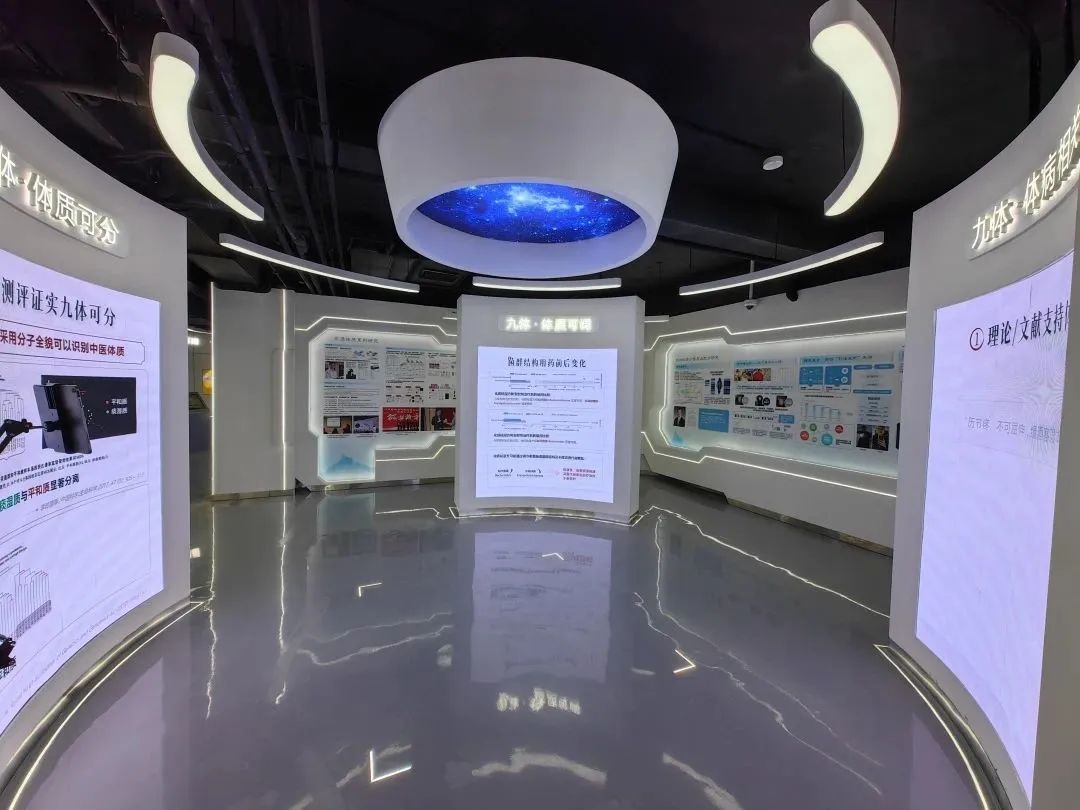 九體醫(yī)學展館分為引言、古今中外比較、大事記、三大科學發(fā)現(xiàn)、全生命周期健康維護、健康中國、國際共享等7個板塊,全面介紹了中醫(yī)體質(zhì)學從研究人的“病”到研究病的“人”的思維模式轉(zhuǎn)變、中國人九種體質(zhì)的發(fā)現(xiàn)、調(diào)節(jié)體質(zhì)防控慢病和全生命周期健康維護的研究成果,以及研究成果在國家基本公共衛(wèi)生服務(wù)和慢病防控中的轉(zhuǎn)化應(yīng)用和國際影響,并勾畫了“九體醫(yī)學健康中國計劃”的宏偉藍圖。