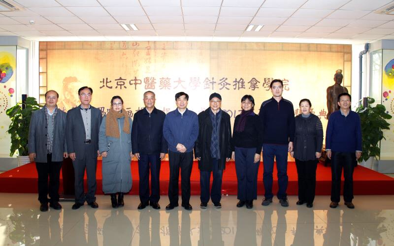 12 月13日中午,針灸推拿學(xué)院在良鄉(xiāng)校區(qū)針灸推拿學(xué)院樓一層大廳舉行 “岐黃密碼”壁畫(huà)揭幕捐贈(zèng)儀式。參加此次活動(dòng)的嘉賓有北京中醫(yī)藥大學(xué)校長(zhǎng)徐安龍,黨委副書(shū)記兼紀(jì)委書(shū)記林志華,良鄉(xiāng)校區(qū)綜合管理辦公室主任傅騫,原《光明日?qǐng)?bào)》主編、北京中醫(yī)藥大學(xué)高級(jí)訪問(wèn)學(xué)者敬天林,國(guó)家一級(jí)美術(shù)師、“岐黃密碼”壁畫(huà)創(chuàng)作人楊志凌,《中國(guó)教師報(bào)》編輯部主任梁穎寧,針灸推拿學(xué)院黨委書(shū)記鄔繼紅、院長(zhǎng)趙百孝、副書(shū)記侯中偉、副院長(zhǎng)郭長(zhǎng)青等。此次活動(dòng)在我院全體導(dǎo)師及2017級(jí)研究生的共同見(jiàn)證下舉行。