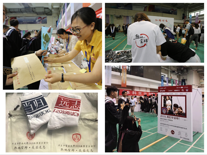 在離校手續(xù)辦理現(xiàn)場,招生與就業(yè)處為畢業(yè)生準備了由“蒲公英杯畢業(yè)生紀念文創(chuàng)紀念品征集活動”中評選出的“暖心杏林、情誼棉棉”毛巾襪子套裝。校友會特為2019屆畢業(yè)生設計制作了離校紀念文化衫。各學院在為畢業(yè)生發(fā)放畢業(yè)證書及學位證書的同時還送上了一朵玫瑰花。這些精心準備的離校紀念品,凝聚著母校對畢業(yè)生的美好祝福,同時也使畢業(yè)生在離校過程中持續(xù)感受到了母校的溫暖。