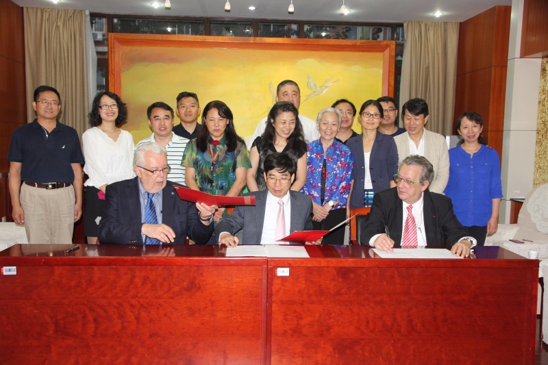 9月7日,借我校慶祝60周年華誕之際,徐安龍校長代表學校與HLA醫(yī)學多塞諾獎實驗室平臺主席Dominique Charron、歐洲系統(tǒng)生物醫(yī)學研究院(European Institute of System Biology and Medicine,總部設在法國)主席Charles Auffray以及歐洲醫(yī)學精準平臺主席Jean-Pierre Armand“四方攜手”簽署了中西醫(yī)結合共同促進人類健康的合作協(xié)議。